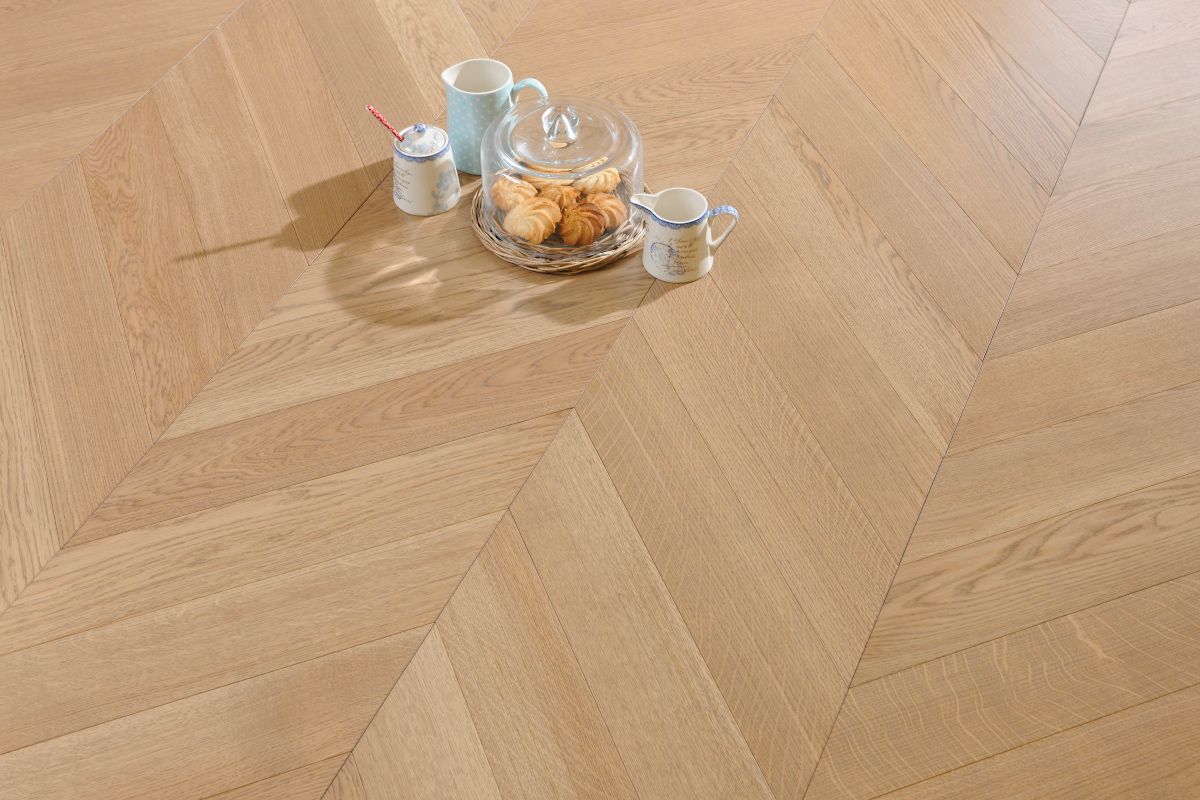Step into the future of flooring with Coswick Flooring’s Chevron collection, a contemporary and technologically superior interpretation of the classic French floor. Crafted with cutting-edge equipment, each plank is precision-milled, ensuring a seamless and efficient flooring installation process.Experience the pinnacle of European craftsmanship with Coswick's Chevron collection—crafted entirely in Europe. With water-resistant finishes and a lifetime structural warranty, this collection promises enduring quality. Approved for heated floors, it provides the widest pattern selection, allowing you to tailor your floor to perfection. Embrace beauty and sustainability with ecologically responsible, environmentally friendly, and socially responsible practices woven into every detail.Featuring stable engineered construction and a comprehensive line of installation and maintenance products, Coswick guarantees a lifetime of perfection. Choose our flooring for a remarkable addition that not only enhances but defines the exceptional character of your space.