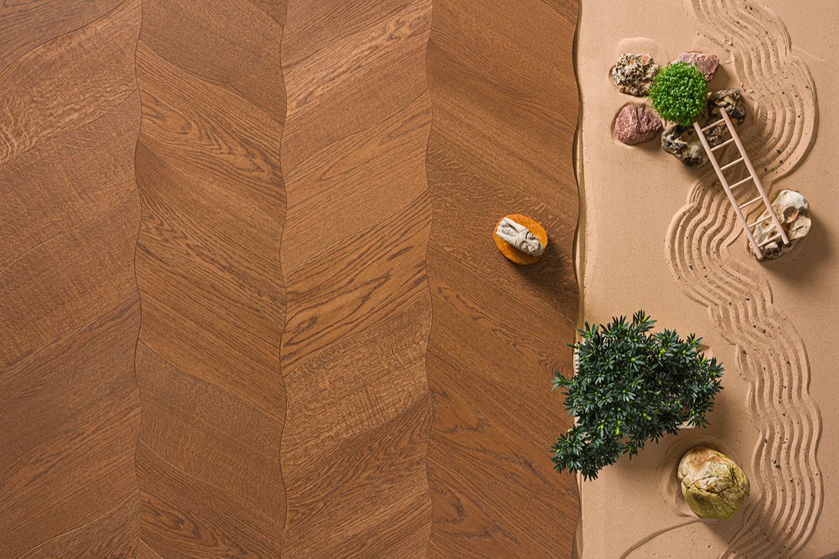 Experience the epitome of European craftsmanship with Coswick's. 100% made in Europe, water-resistant finishes, and a lifetime structural warranty ensure enduring quality. Approved for heated floors, the widest pattern selection lets you customize your perfect floor, while ecologically responsible, environmentally friendly, and socially responsible practices guarantee both beauty and sustainability. With stable engineered construction and a full line of installation and maintenance products, Coswick offers lifetime perfection. Choose our product for flooring that's as remarkable as your space.Explore the Tealeaf pattern in Coswick hardwood floors, a highlight in the Spirit of Nature collection. Inspired by Japanese traditions, this collection embodies a profound connection with nature. Rooted in the ancient tea ceremony's philosophy of harmony and peace, our floors seamlessly integrate the flowing lines of the Tealeaf, mirroring nature's tranquility. Envision bringing this elegance into your space as you explore our flooring options. With Coswick, transform your home into a haven that harmonizes with the natural beauty around you.