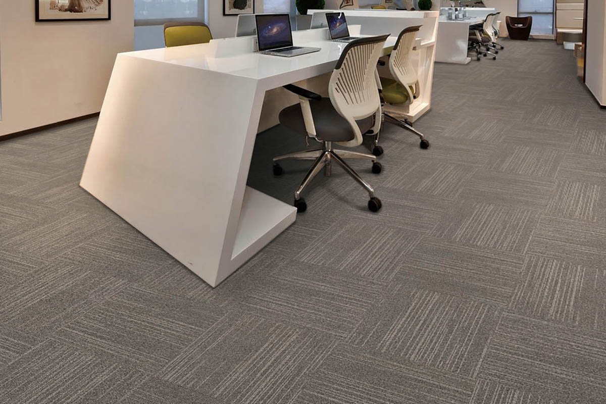 Welcome to FloorSure! Transform your space with our Fuzion Carpet Tile Canmore collection. Featuring the Canmore series, our carpet tiles boast a subtle tonal linear pattern, adding a streamlined and clean aesthetic to any environment. Crafted with premium solution-dyed nylon fibers and backed with PVC infused with fiberglass, our tiles offer both durability and style. With a pile weight of 16 oz. per square yard and a density of 5610 oz. per cubic yard, our tiles are designed to withstand high office traffic while maintaining their appearance. Plus, with certifications including CRI Green Label Plus, ISO 9001, and ISO 14001, you can trust in the quality and sustainability of our products. Enjoy peace of mind with our Lifetime Limited Commercial Warranty. Visit our showroom at 9030 Leslie St. Unit 10, Richmond Hill, to explore our Fuzion Carpet Tile collection today!