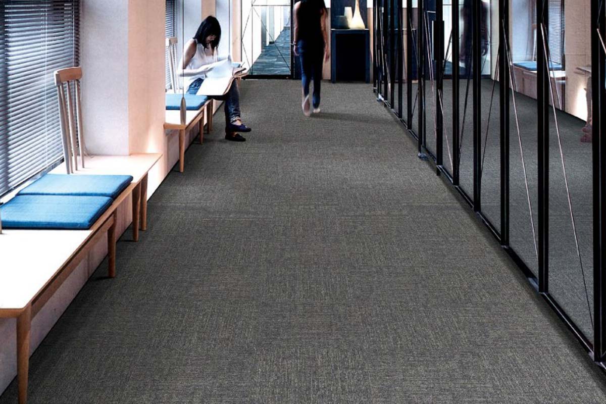Welcome to FloorSure! Explore our timeless Fuzion Carpet Tile collection, featuring the Odessa series. Designed for commercial open spaces, Odessa offers a classic design with a subtle pattern that effortlessly coordinates with any environment. Available in 20" x 20" tiles and 6 elegant colors, our tiles are crafted with solution-dyed nylon fibers and backed with PVC infused with fiberglass for durability and stability. With a pile weight of 16 oz. per square yard and a density of 17164 oz. per cubic yard, our tiles are built to withstand high traffic areas while maintaining their pristine appearance. Choose from installation options including Ashlar, Brick, Monolithic, and Quarter Turn to customize your space according to your unique style preferences. Plus, with Green Label Plus certification and a Lifetime Limited Commercial Warranty, you can trust in the quality and sustainability of our products. Visit our showroom closed by (9030 Leslie St. Unit 10, Richmond Hill), to explore our Fuzion Odessa Carpet Tile collection today!