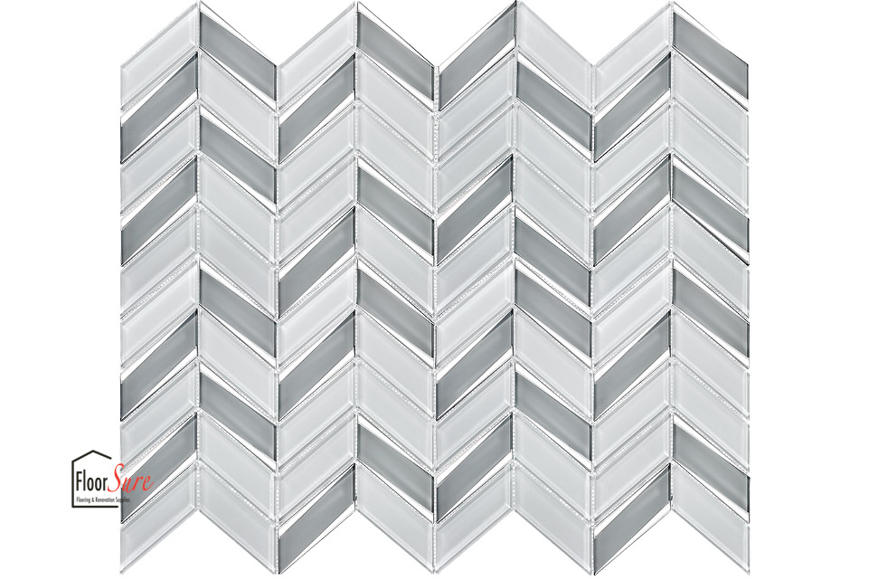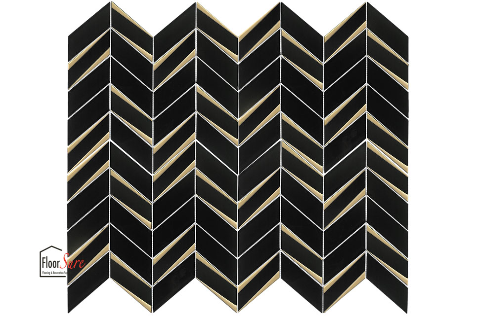 The Envision Collection features unique glass mosaics in two distinct formats: Arabesque and Chevron. With rich color palettes including Blue Sapphire, Black, White, and Grey, these mosaics bring a touch of modern elegance to any space. The Chevron format adds a slight shimmer of silver and gold, enhancing its modern appeal. The Arabesque format showcases elegant natural stone veining, offering a contemporary style that will elevate the look of any room. These distinctive formats and colors are designed to add a lasting touch of sophistication to your home. Ideal for powder room walls, kitchen backsplashes, accent walls, and bathroom walls. Chip Size: 4.25" x 2" Sheet Coverage: 1 sqft Thickness: 4mm Application: Wall Use: Residential/Commercial Packed: 5 pcs per box Coverage per Box: 5 sqft NOTE: Sold by full boxes of 5 pcs/box