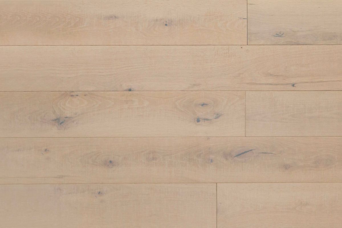Introducing Grandeur's Enterprise Collection – an exquisite line of engineered hardwood flooring crafted from beautiful European white oak. These 7-1⁄2" long planks redefine elegance with a distinctive texture that provides a timeless, aged look. Inspired by practicality, this top-tier collection features patterned band saw distress marks on a 3mm thick veneer, creating a unique character.Wire brushed and smoked to perfection, the Enterprise Collection seamlessly blends functionality with style. Embrace the richness of recent top colors, ensuring your space stays on-trend and sophisticated. Elevate your surroundings with the enduring beauty of Grandeur's Enterprise Collection, designed for those who appreciate the perfect fusion of aesthetics and practicality. Transform your space into a timeless masterpiece with the exquisite European white oak planks from the Grandeur Enterprise Collection.