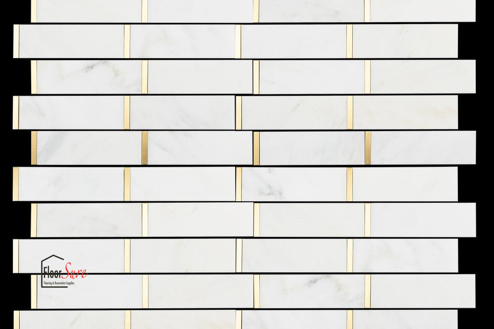 BrickWork Collection - Timeless Elegance BrickWork combines timeless class with its polished body and border, making a bold statement in any space. Adorn your walls with luxurious veining that contrasts throughout, creating a modern edge with a bold color palette and striking, scattered appearance. Available Combinations: 2"x6" White + Gold 2"x6" Crema + Emperador Uses: Backsplash, Kitchen Wall, Bathroom Wall, Accent Walls, Fireplace Please Note: Due to the organic composition of marble, each piece is unique. Variations in color, pattern, texture, and veining are natural and expected. Dimensions and Specifications: Chip Size: 2"x6" Sheet Coverage: 1 sq. ft. Thickness: 10mm Application: Wall Suitable for: Residential and Commercial use Packaging: Packed: 5 pcs per box Coverage per Box: 5 sq. ft. Note: Sold in full boxes of 5 pieces.