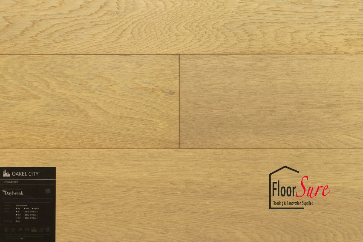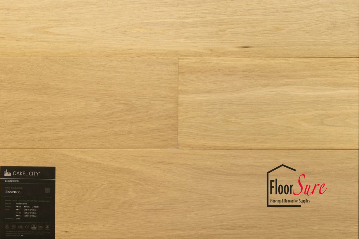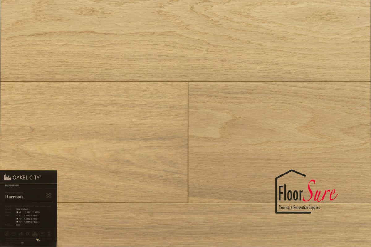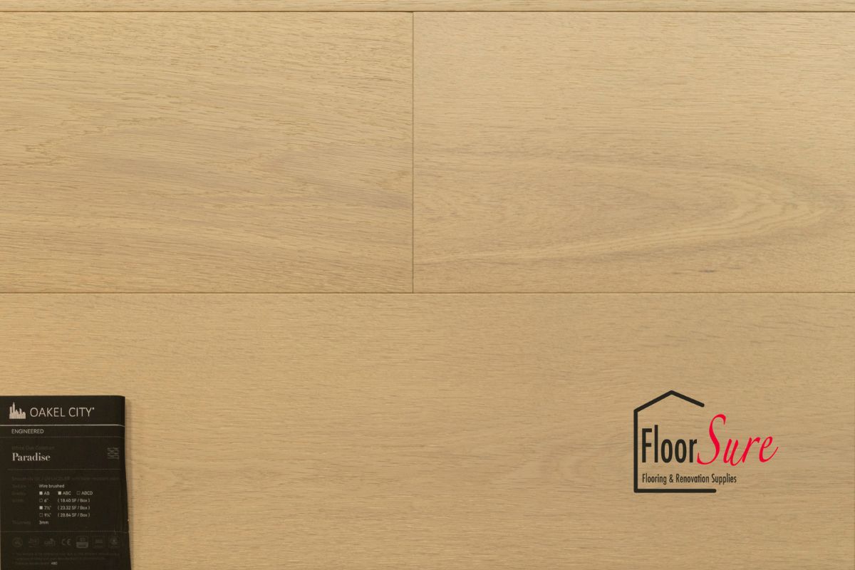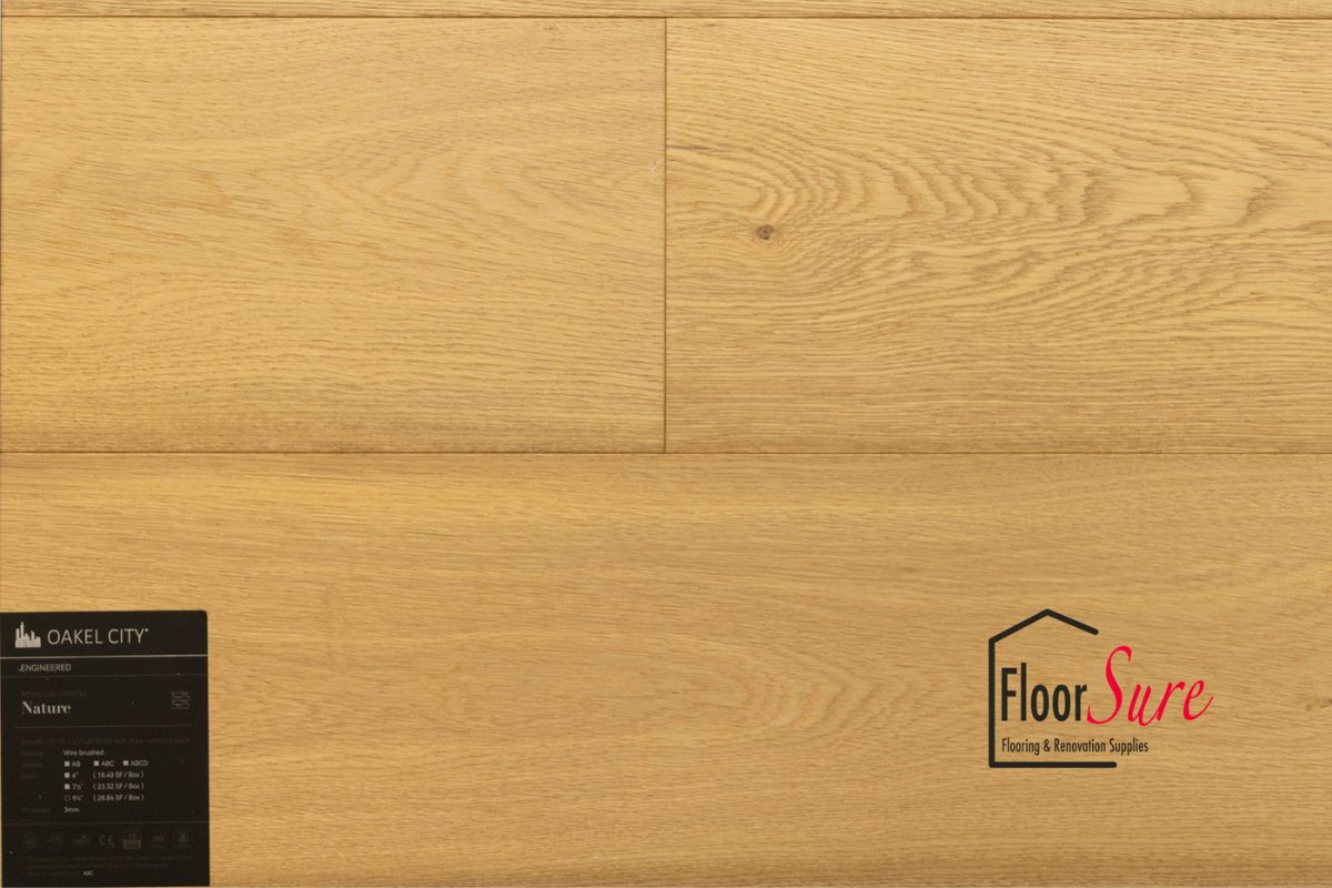 Introducing the remarkable Oakel City Floor, an exquisite flooring option meticulously crafted from authentic hardwood rather than synthetic materials. At FloorSure, we take pride in offering you a product that not only enhances the aesthetics of your space but also provides excellent value for your investment. Key Features of Oakel City Floor from FloorSure: 1. **Affordability and Value:** Oakel City Floor is designed to be not only affordable but also a valuable addition to your home or commercial space. 2. **various Width Options:** We understand that every space is unique, and that's why Oakel City Floor comes in various width options. Choose the width that best complements your interior design vision. 3. **Wood Grade Selection:** Tailor your flooring to your preferences with our diverse wood grade options. Whether you prefer the distinctive character of the wood, the refined look of select grade, or the combination of both in Select and Better, we have you covered. 4. **3mm Wood Veneer Layer:** Oakel City Floor boasts a substantial 3mm wood veneer layer, ensuring a genuine hardwood experience that adds warmth and authenticity to your space. Elevate your interiors with the natural beauty and enduring quality of Oakel City Floor from FloorSure. Our commitment to excellence ensures that you get the best in terms of aesthetics, durability, and value.