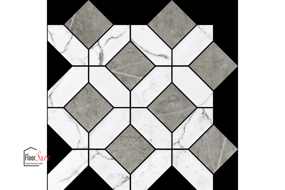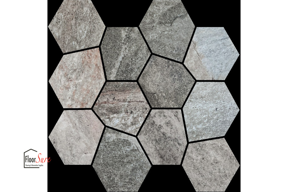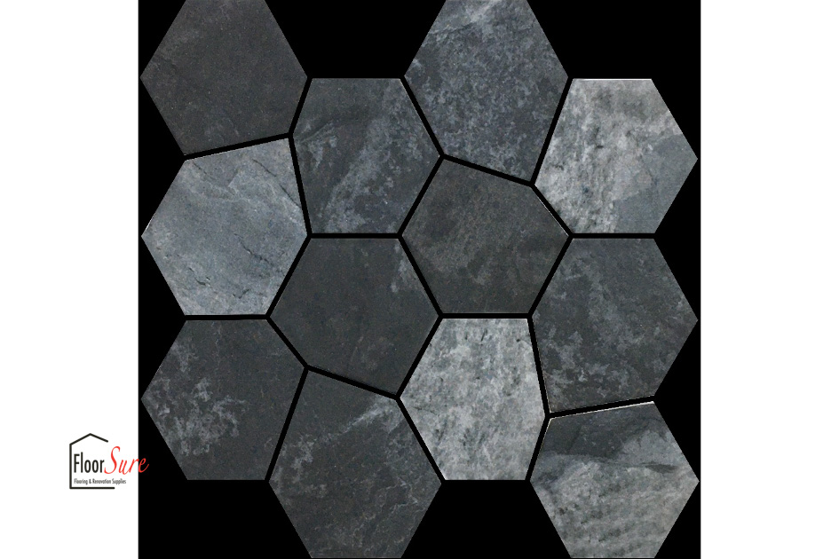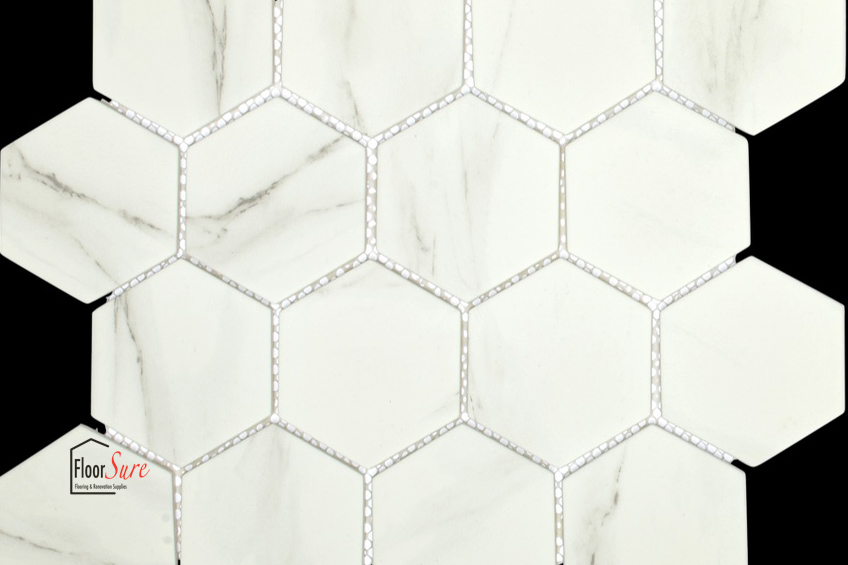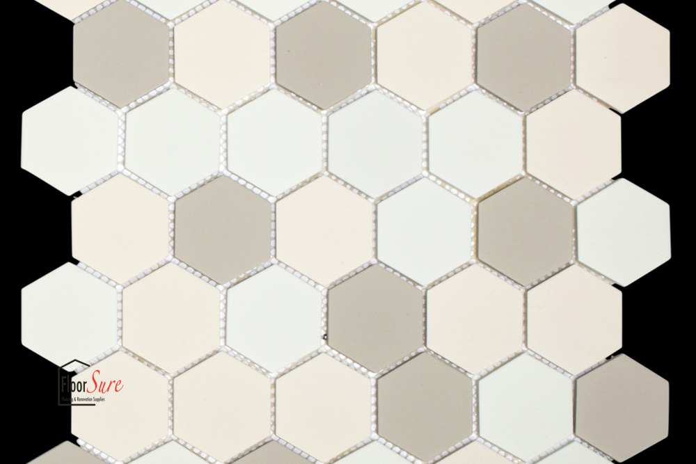 UpCycle™ Mosaics offer an eco-friendly solution for home design. Made from recycled matte glass and featuring a versatile hexagon pattern, UpCycle™ combinations bring timeless appeal to a variety of settings, whether traditional, transitional, or contemporary. Available Combinations: 2" Hexagon - Light & Dark | Blanco - 3"x6", 3" Hexagon, 1"x4" Herringbone | Safari - Carbone, Girgio | Weave - Bianco Girgio, Bianco Nero Chip Size: Irregular Sheet Coverage: 1.30 sqft Thickness: 8 mm Application: Floor/Wall Use: Residential/Commercial Packed: 5 pcs per box Coverage per Box: 6.50 sqft Note: Sold by full boxes of 5 pcs/box