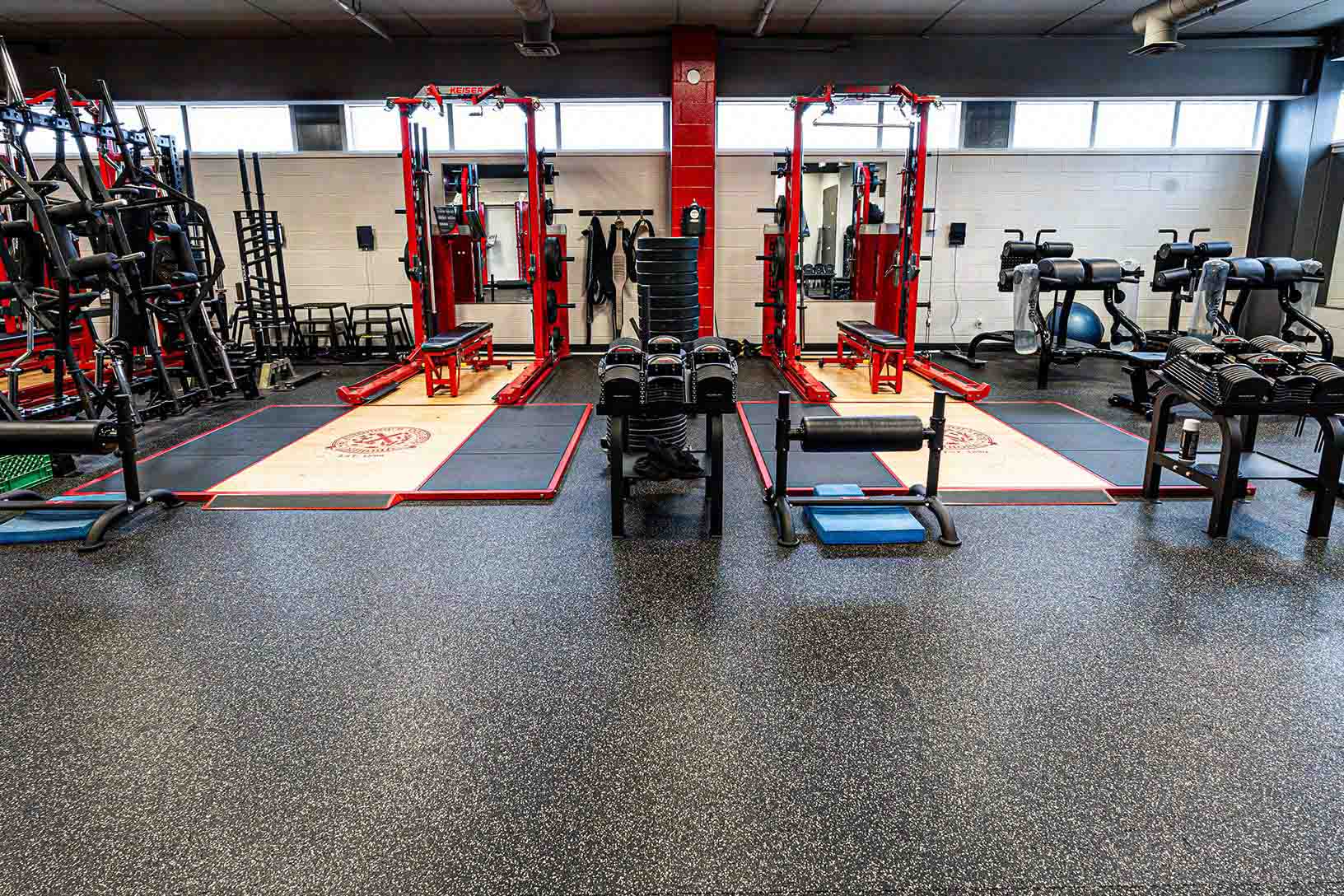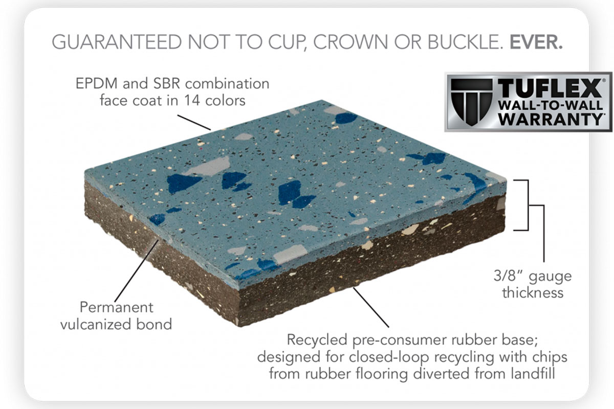 适用于健身房、健身中心及多功能商业空间的优质橡胶地板,具有吸震、耐用、易于维护等特点。